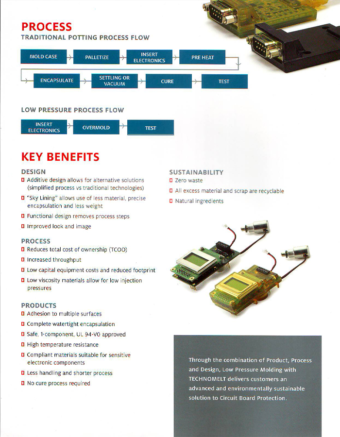 Electronic circuit board and assembly encapsulation, molding and protection.